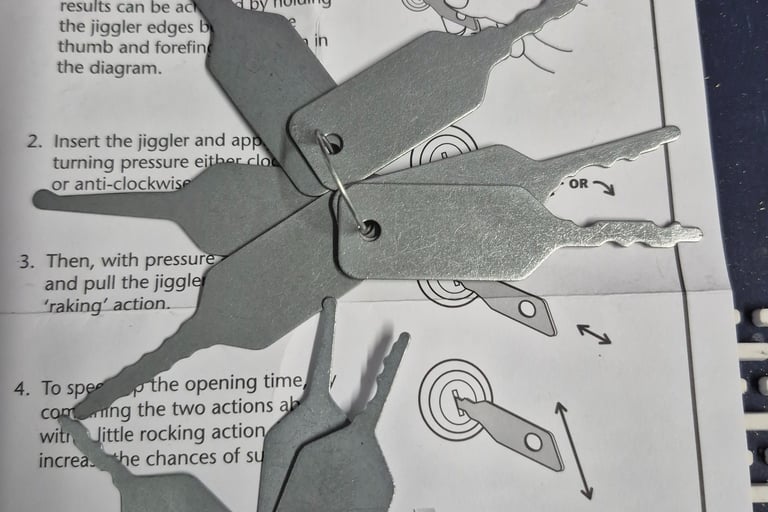 At Locksmith Ashton in Makerfield, we utilize a variety of tools to unlock doors, including "The Jigglers". These remarkable jiggler keys facilitate the easier unlocking of wafer-style locks, such as those found in window handles, post box locks, furniture locks, and certain garage door locks. Nonetheless, skill and expertise are still necessary, but these keys certainly assist locksmiths in their work. If your needing locksmith services in Ashton in Makerfield give Derek or Pam a call on 07967 778940 for a no obligation quote.